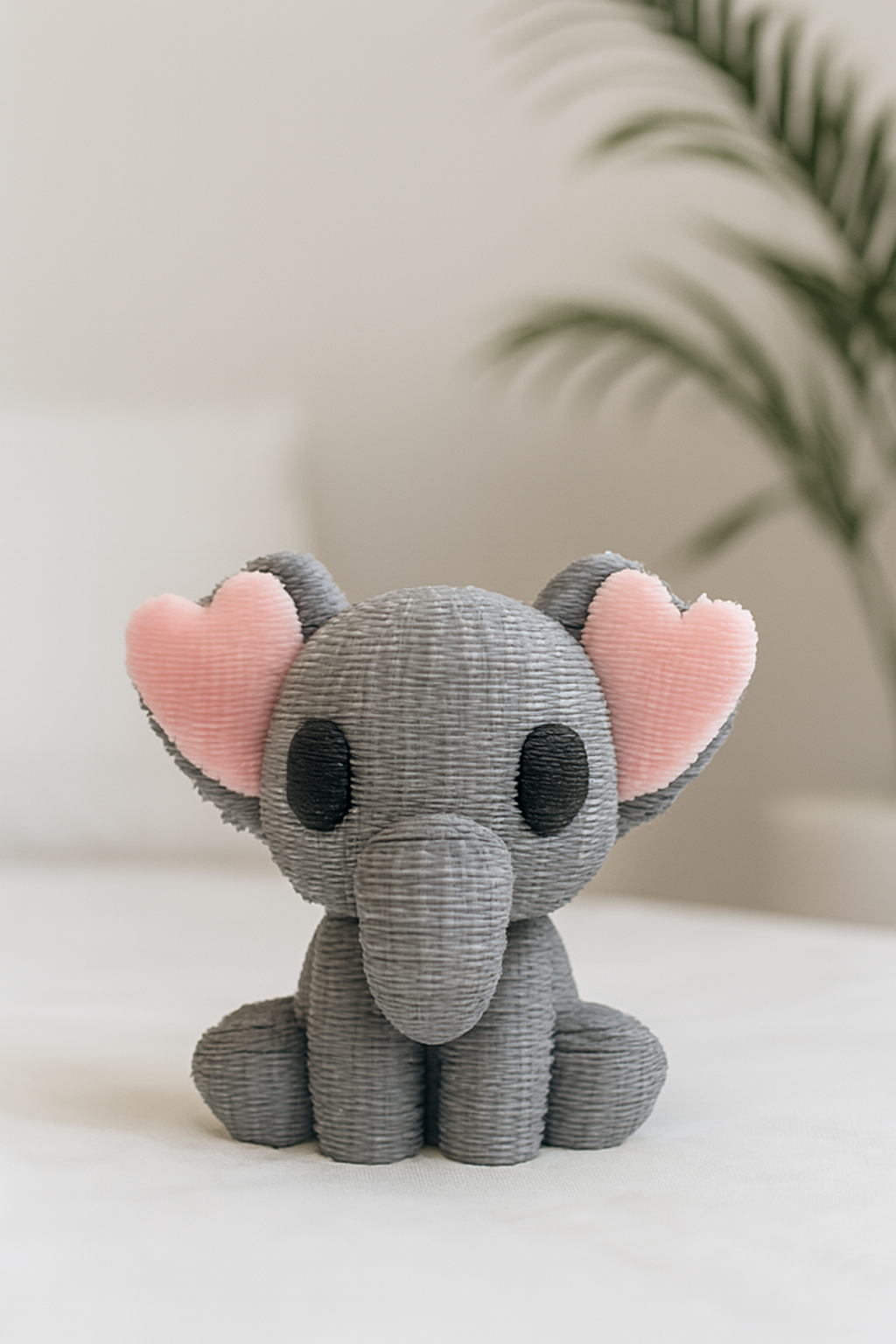 ° Adorable design: a sweet little elephant with a cozy knitted texture and lovely details.